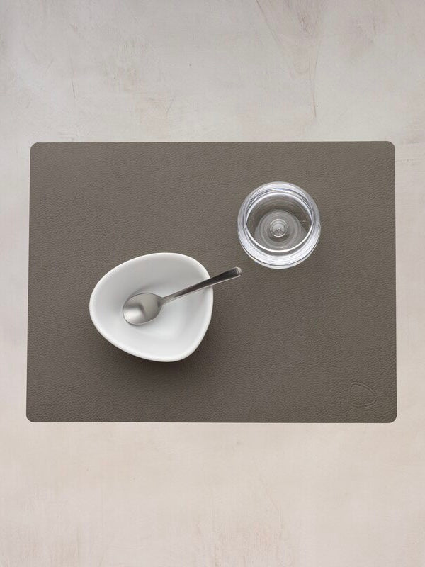 Dieses Platzset ist eine neue Entwicklung aus dem Haus LindDNA. Es ist deutlich biegsamer und die Oberfläche noch pflegeleichter als die bisher bekannten Serien. Die Qualität ist ebenfalls aus recyceltem Leder nach Öko-Tex Standard und Naturkautschuk gefertigt. Die Oberfläche ist leicht mit einem feuchten Tuch zu reinigen. Die Größe dieses Platzsets in der klassischen rechteckigen Form eignet sich bestens für den Frühstückstisch oder zum Servieren von Snacks oder Kaffee und Kuchen. Auch bei kleinen Tischen überzeugt diese Größe.