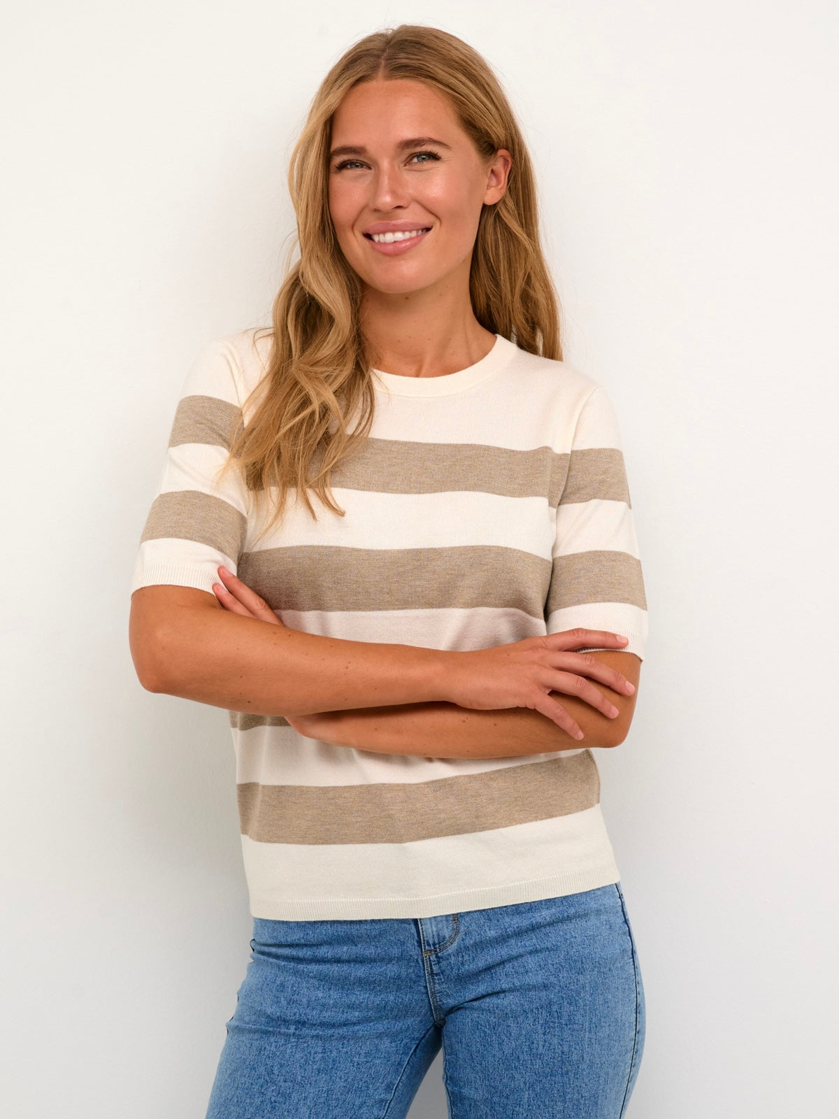 Sportlich eleganter Pullover mit Blockstreifen in einer soften Viskosemischung. Rundhalsausschnitt, halblange Ärmel und gerade Form. Ideal auch unter leichten Jacken oder Blazern.