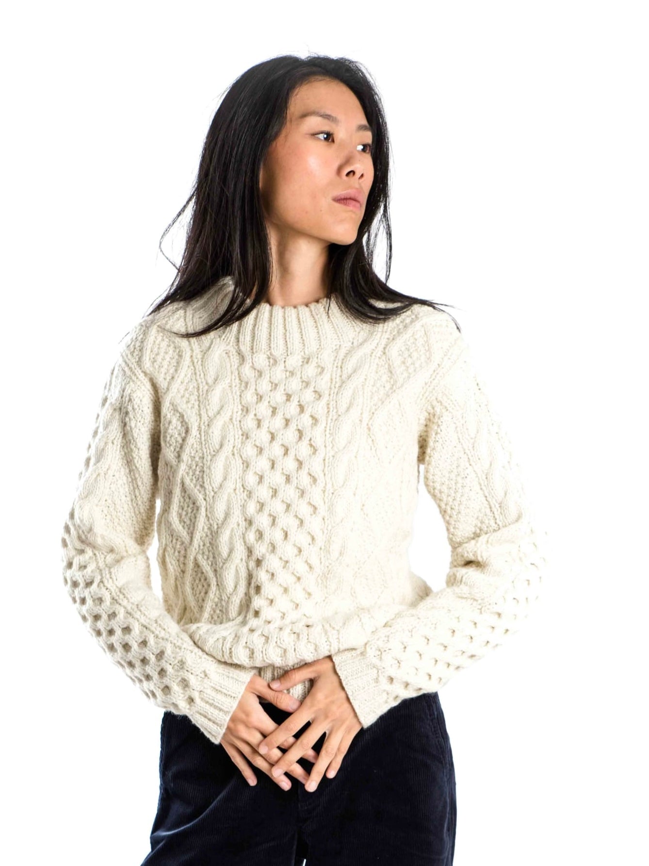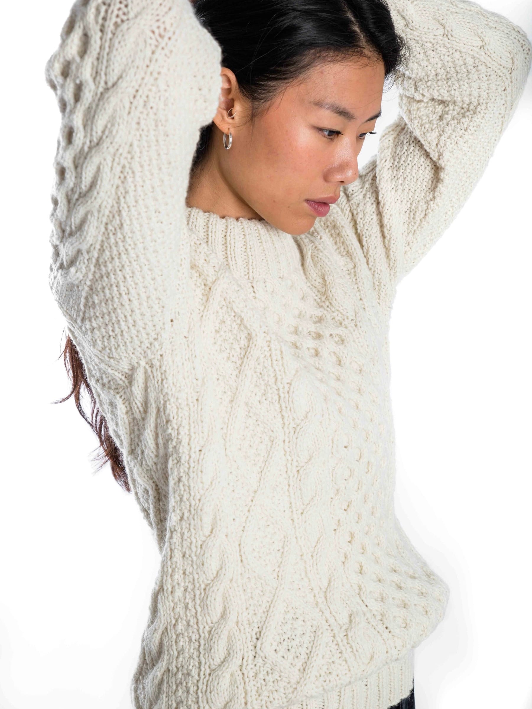 Modischer handgestrickter Rundhalspullover mit aufwändigem Strickmuster aus reiner Merinowolle. Die Pullover werden von Nepalesischen Frauen in ihrem Zuhause handgestrickt und damit CO2 neutral hergestellt. Die Wolle ist extra soft und mit nachhaltigen Farben gefärbt. Die Produktion findet in Nepal unter fairen und transparenten Bedingungen statt. Ein Teil des Gewinns wird gespendet, um Kindern aus der Region eine Schulausbildung zu ermöglichen. Wolle ist ein natürliches und nachhaltiges Material, das sehr strapazierfähig und zu 100% biologisch abbaubar ist. Da Wolle atmungsaktiv und antibakteriell ist, muss sie kaum gewaschen werden. Der Pullover kann einfach über Nacht auf den Balkon oder die Terrasse gehängt werden. Regen bitte meiden. Nach dem Lüften ist der Pullover wieder frisch und kann getragen werden. Mit Rippenbündchen am Kragen, Saum und Ärmelabschluss gearbeitet. Lässige Passform. Ein absolutes Highlight für die kühlen Wintertage.