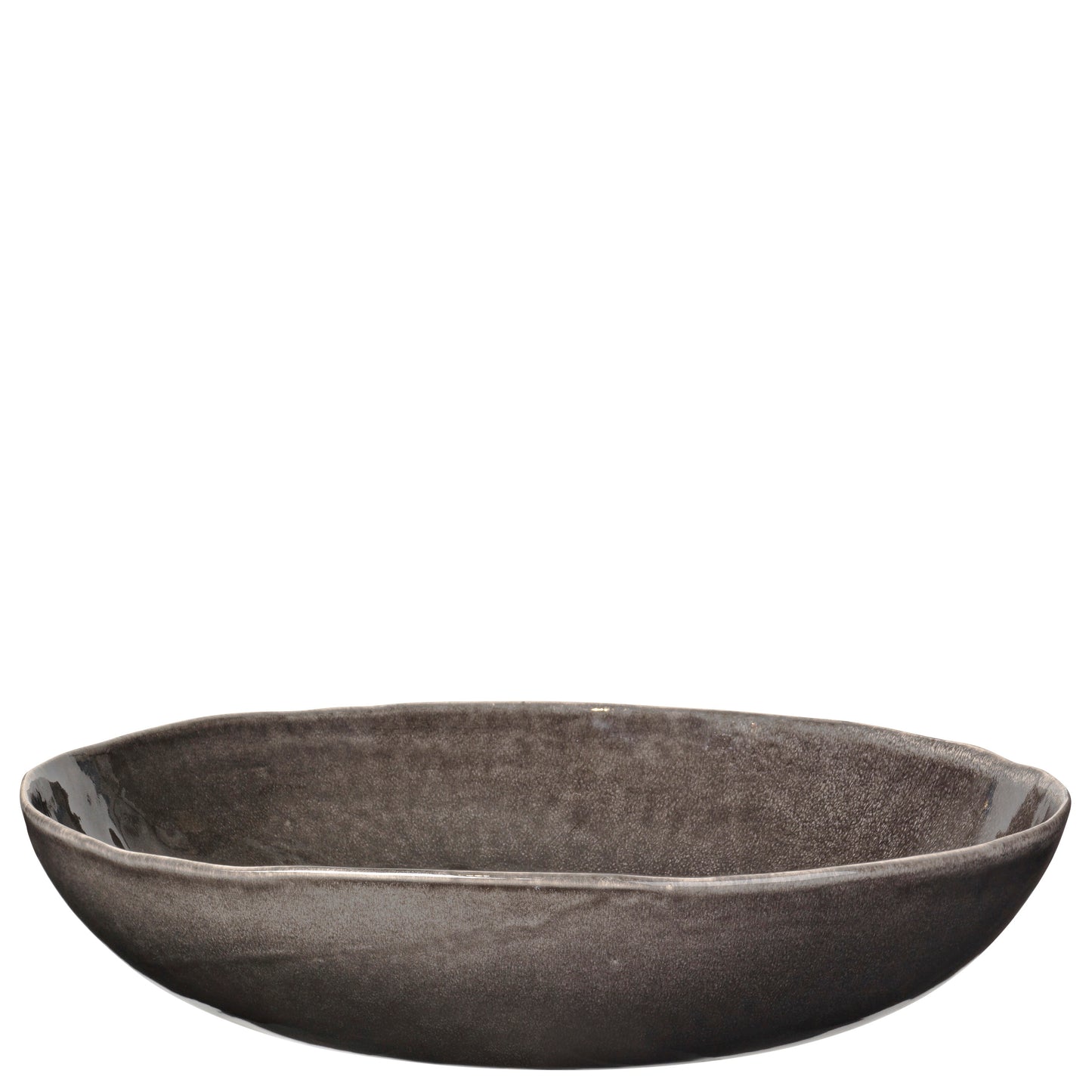 Formschöne Salatschüssel der Serie Nordic Coal aus Steingut. Ideal auch als Obstschale oder für Utensilien. Jedes Teil fällt in Farbe und Struktur etwas unterschiedlich aus. Unebenheiten unter der Lasur sind gewollt und Bestandteil des nordischen Designs. Weitere Teile der Serie werden ebenfalls angeboten.