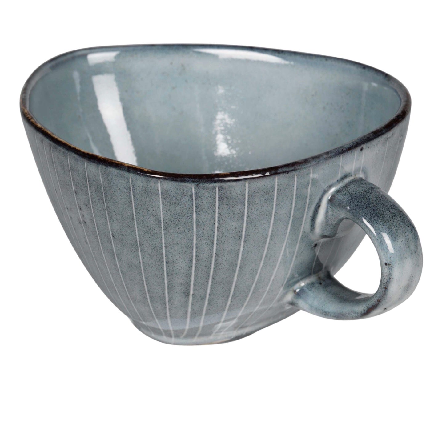 Formschöne Saucenkanne der Serie Nordic Sea in Steingut. Auch für Milchkaffee zu nutzen. Jedes Teil fällt in Form, Farbe und Struktur etwas unterschiedlich aus. Unebenheiten unter der Lasur sind gewollt und Bestandteil des nordischen Designs. Weitere Teile der Serie werden ebenfalls angeboten. Für den Geschirrspüler und die Mikrowelle geeignet.