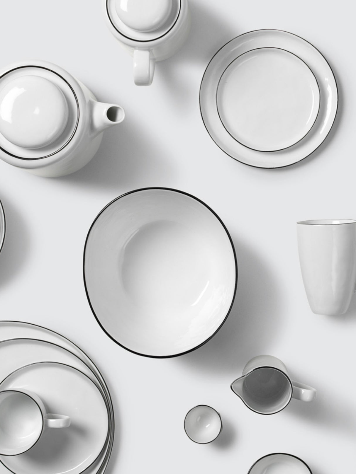Schüssel der Serie Salt aus Porzellan. Ideal für das Servieren von Gemüse, Pasta, Suppen oder Snacks. Jedes Teil fällt in Farbe und Struktur etwas unterschiedlich aus, da die Herstellung handgefertigt ist. Weitere Teile der Serie werden ebenfalls angeboten.