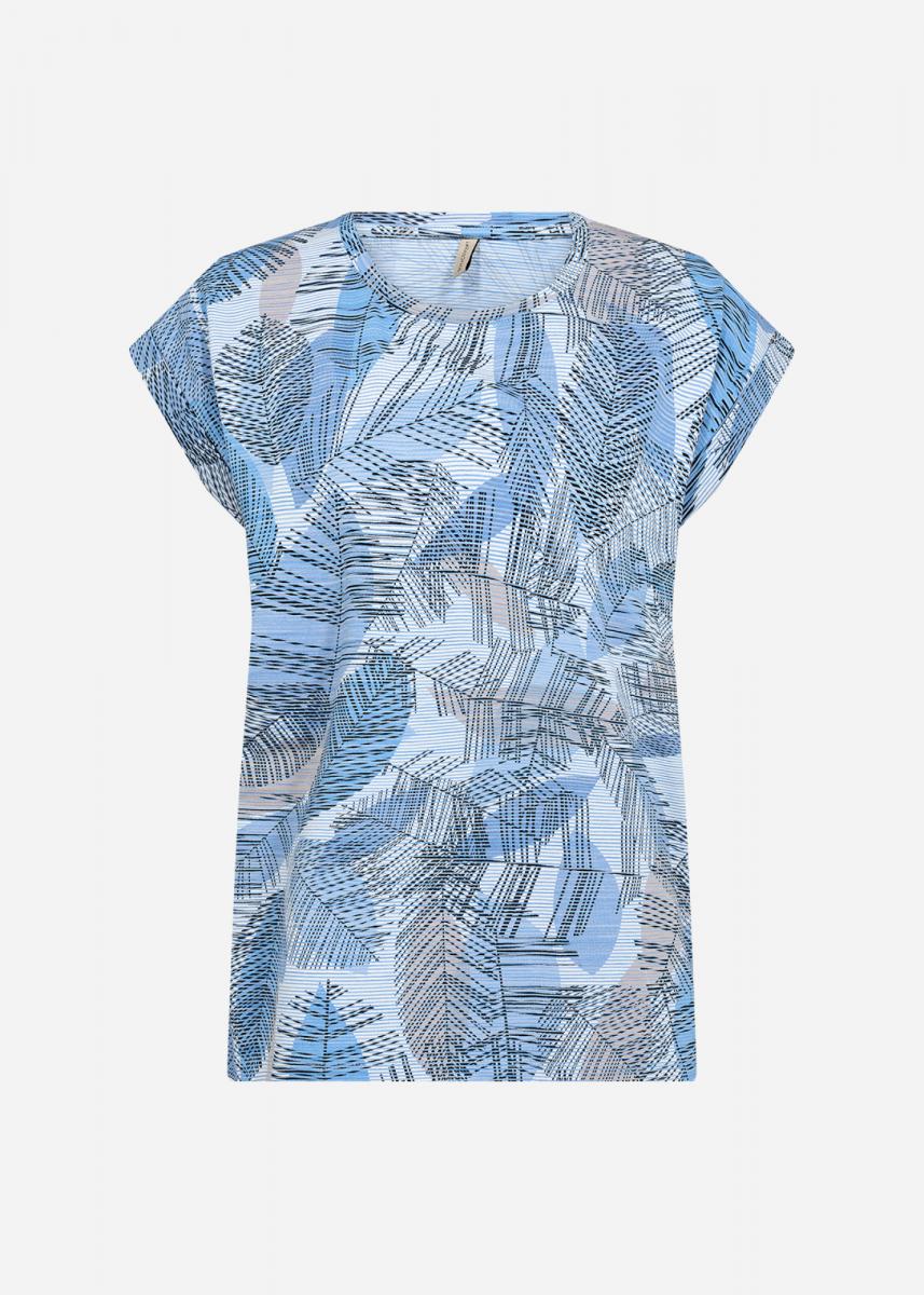 Lässiges Shirt mit Rundhalsausschnitt und attraktivem Phantasiemuster. Überschnittene Ärmel mit gekrempelten Abschlüssen. Dezentes feines Streifengewebe aus einer besonders soften Jerseyqualität.