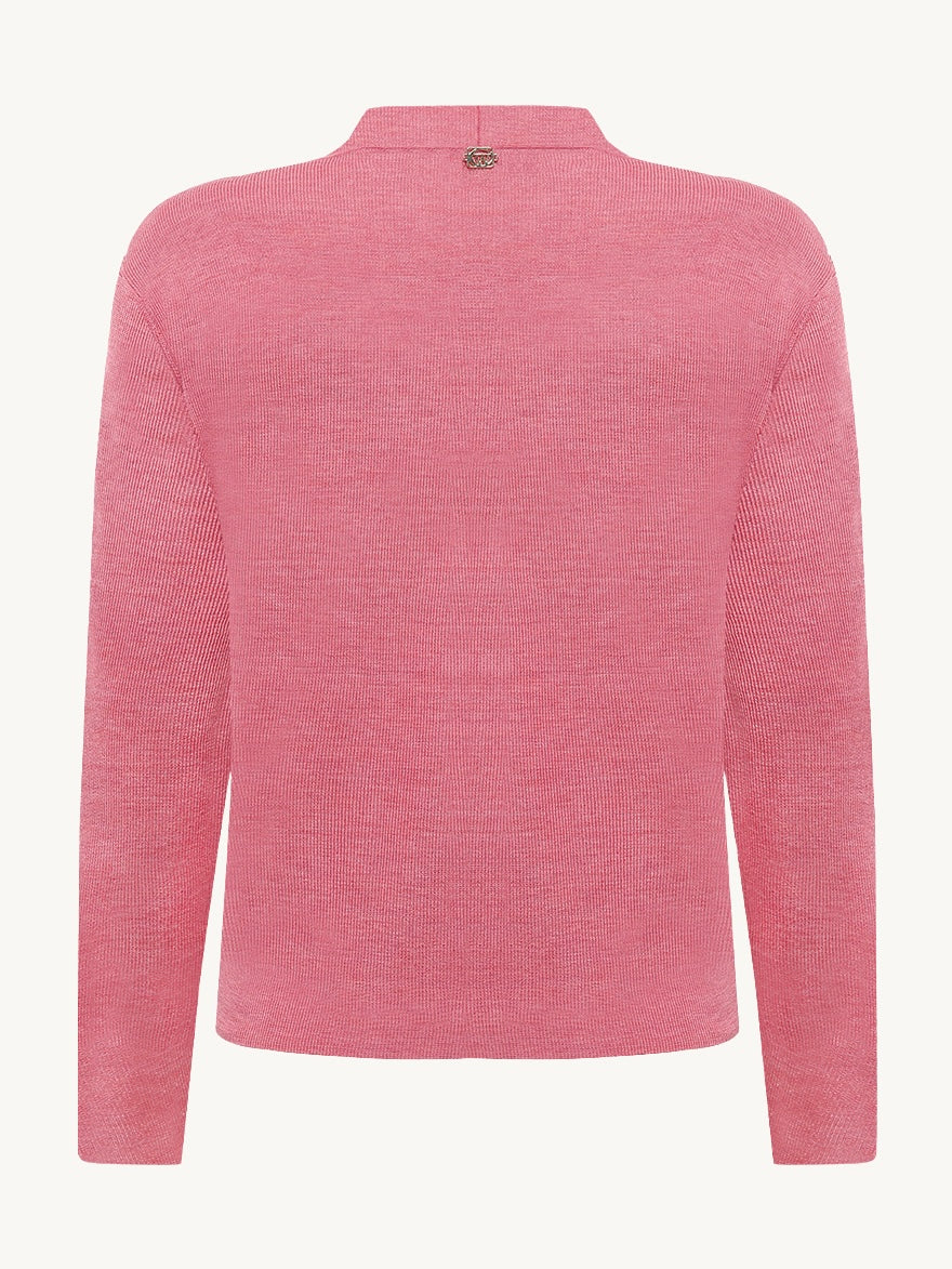 Modische Strickjacke aus einer angenehm weichen Merinowolle. Mit V-Ausschnitt gearbeitet. Auf 4 Knöpfen zu schließen. Sowohl in der Freizeit als auch im Büro zu tragen.