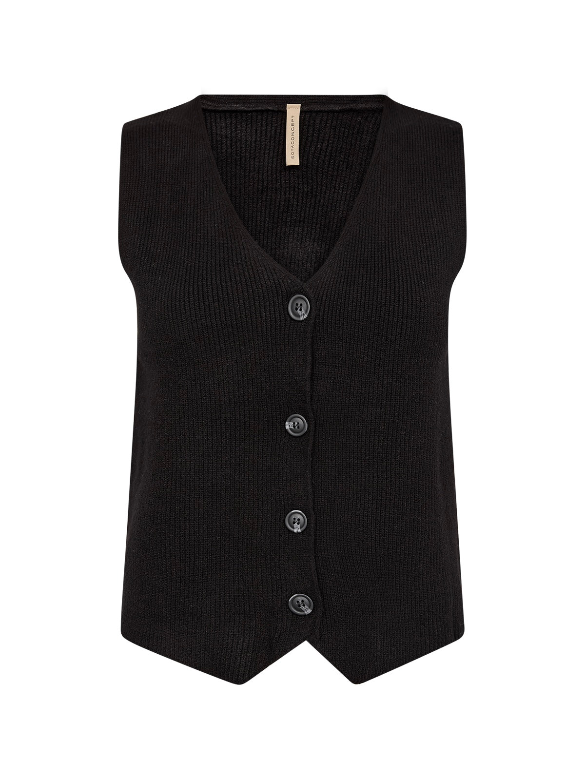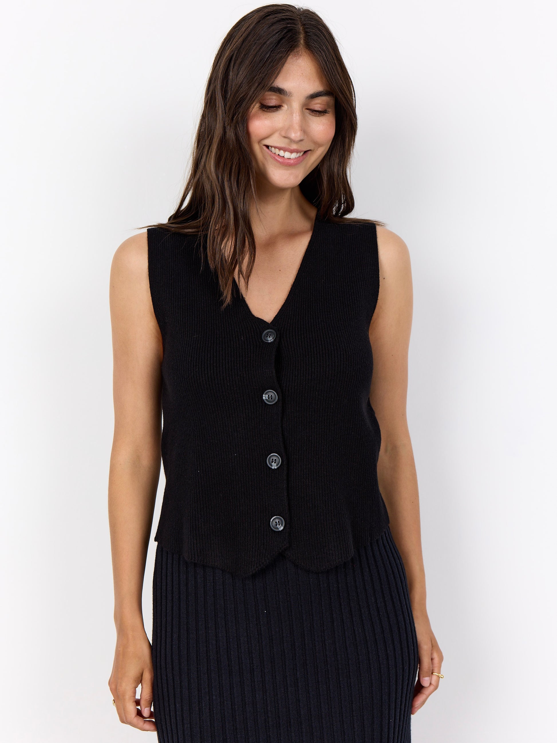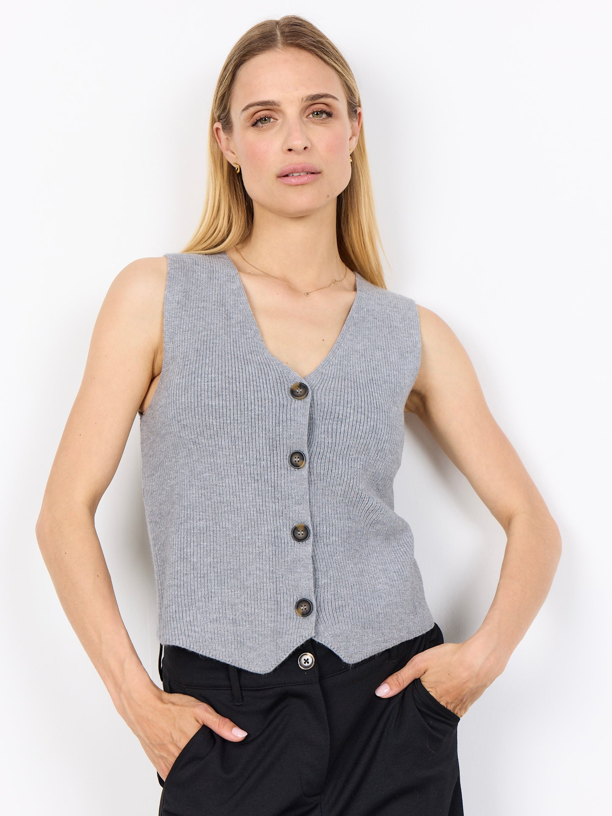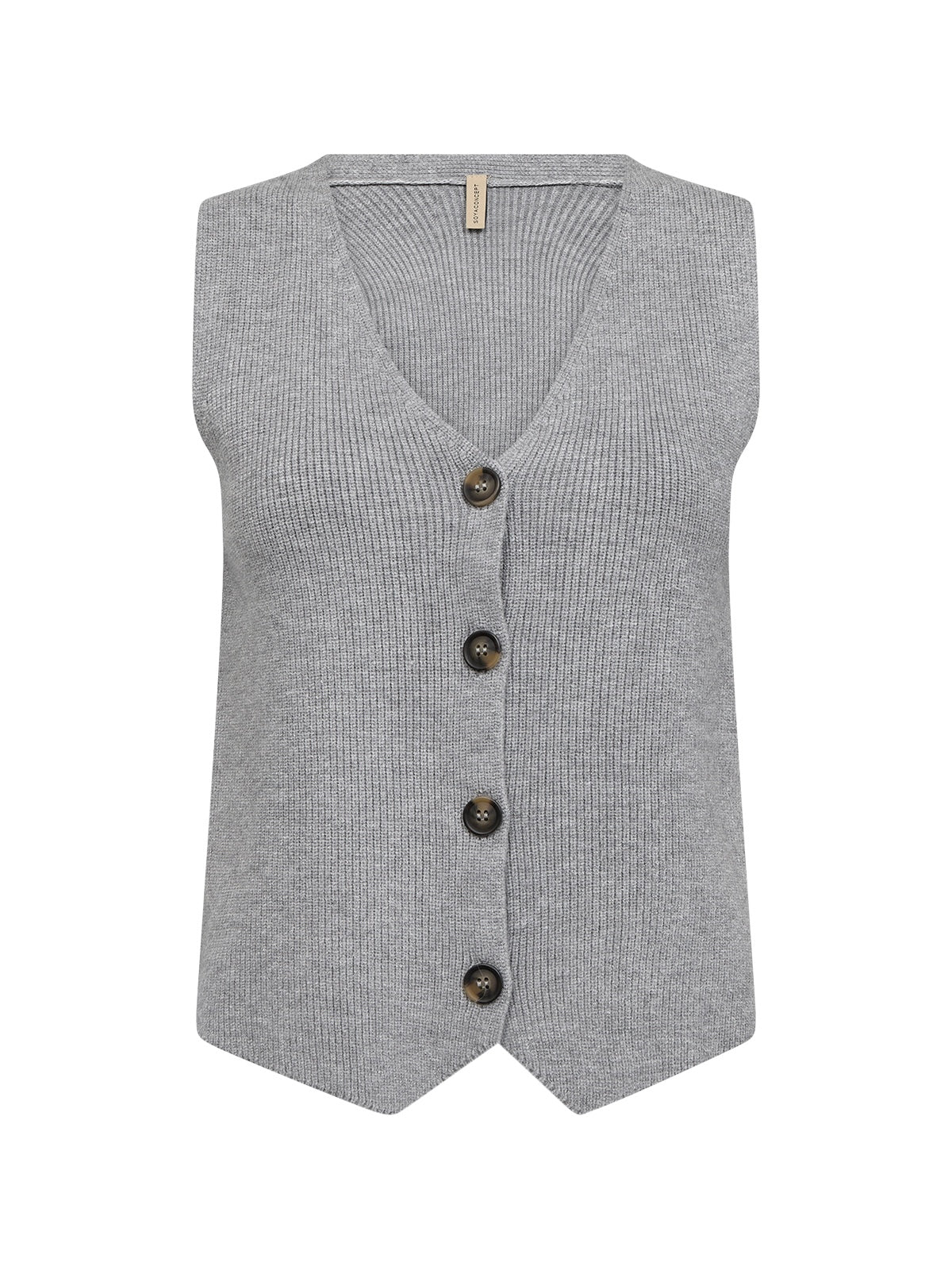 Modische Strickweste in Rippenstruktur mit V-Ausschnitt und vorne geknöpft. Hochwertige, weiche Viskosemischung.