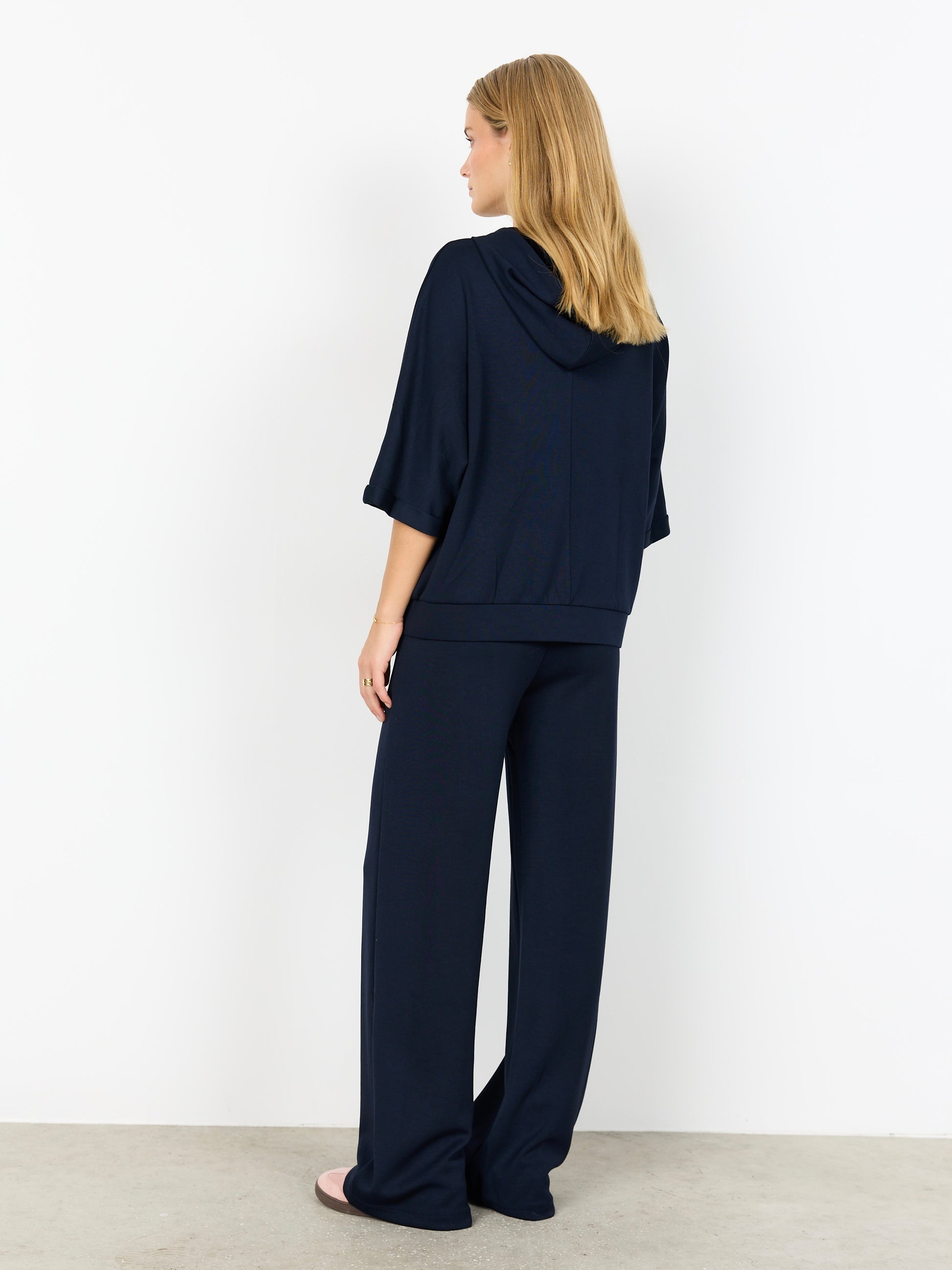 Gepflegte Sweatjacke mit 3/4 Ärmeln aus einer leichten Modalmischung. Mit Kapuze und Bindebändern, Bündchenabschluss am Saum und umgeschlagenen Ärmelabschlüssen. Mit einem Reißverschluss zu schließen.