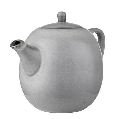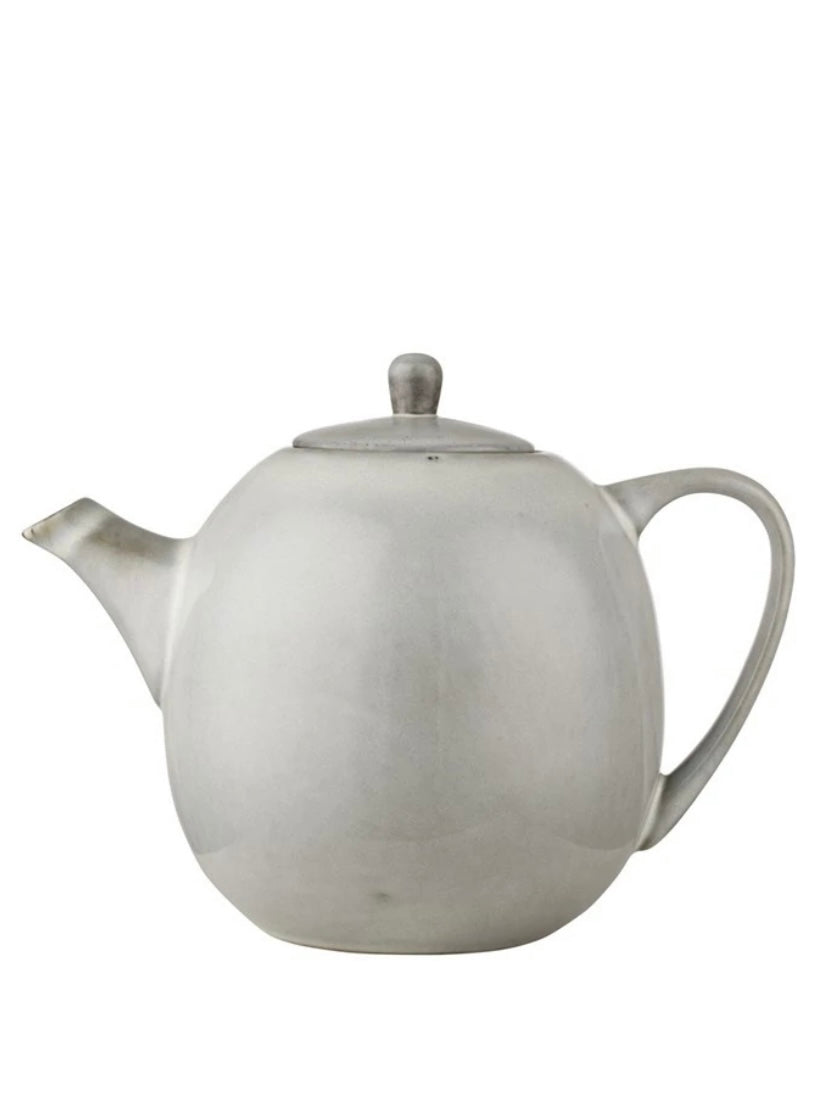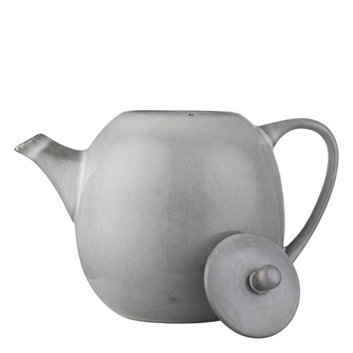 Formschöne Teekanne aus Keramik. Die Oberfläche ist hochglänzend und leicht gesprenkelt. Die Farbe fällt immer unterschiedlich aus und hat oft einen schilfgrünen Ton. Das passende Frühstücks- und Essgeschirr sowie diverse Schalen und Vorratsdosen werden ebenfalls angeboten.